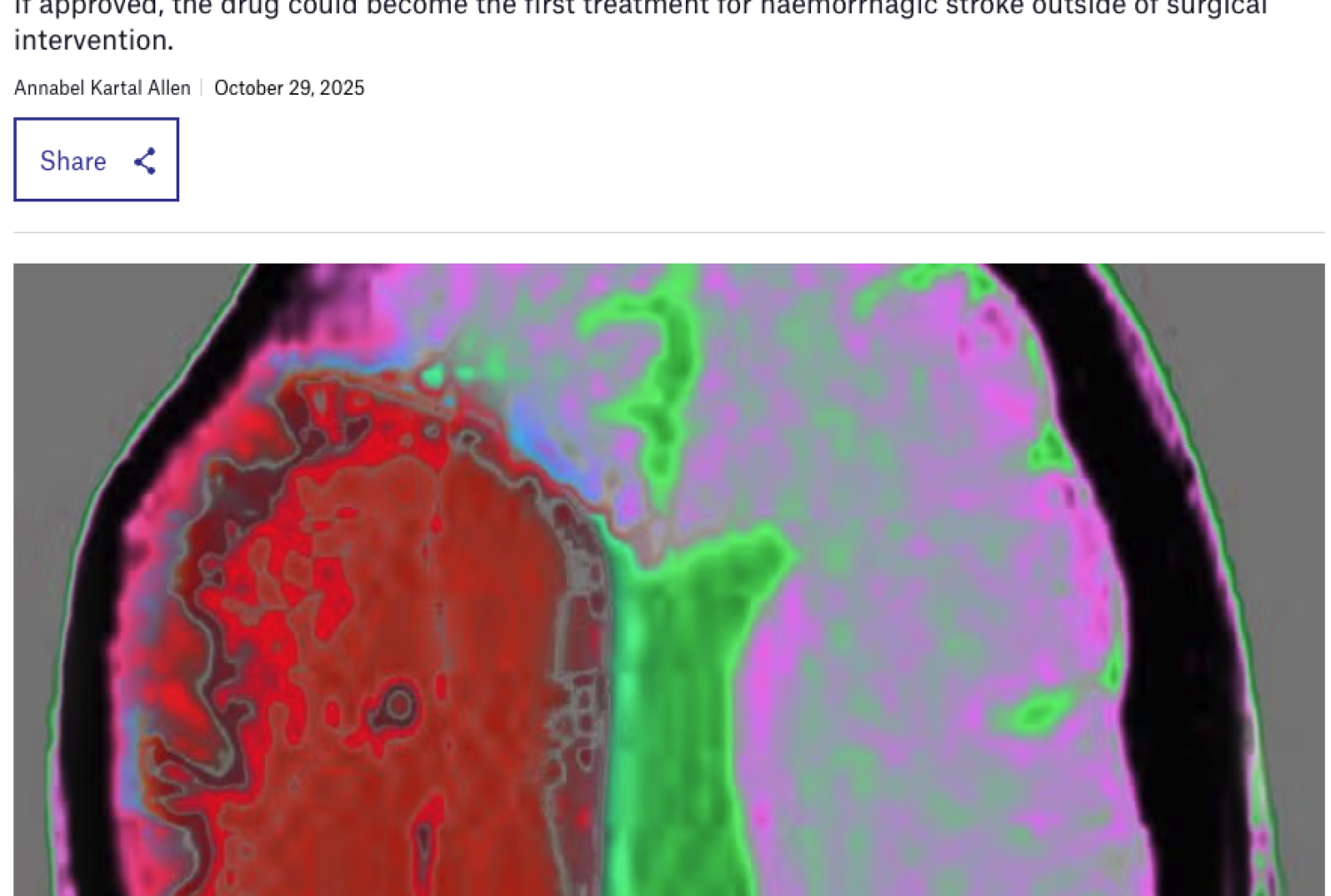 If approved, the drug could become the first treatment for haemorrhagic stroke outside of surgical intervention. Annabel Kartal Allen October 29, 2025
