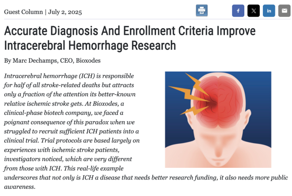 Intracerebral hemorrhage (ICH) is responsible for half of all stroke-related deaths but attracts only a fraction of the attention its better-known relative ischemic stroke gets. At Bioxodes, a clinical-phase biotech company, we faced a poignant consequence of this paradox when we struggled to recruit sufficient ICH patients into a clinical trial. Trial protocols are based largely on experiences with ischemic stroke patients, investigators noticed, which are very different from those with ICH. This real-life example underscores that not only is ICH a disease that needs better research funding, it also needs more public awareness.